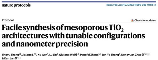 Recently, the research team led by Professor Lan Kun from Academician Zhao Dongyuan’s group at the Institute of Energy and Materials Chemistry, Inner Mongolia University, published their latest findings in the prestigious journal Nature Protocols, with a companion paper in Nano Letters. These studies offer valuable methodological insights and application examples for the controllable synthesis and high-performance utilization of mesoporous titanium dioxide (TiO₂)-based materials.