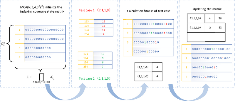 In order to support the generation of the combination test cases with higher covering strength through metaheuristic algorithm, the article, based on the specially-designed data architecture, proposes the combination location methods which are universal and applicable to other search-based methods and presents the process of fitness calculation(Fig. 1).