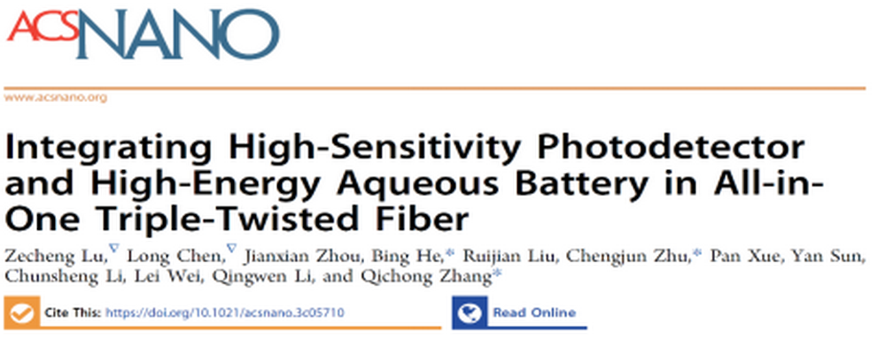 Recently, the research team of Prof. Zhu Chengjun with the School of Physical Science and Technology has made important progress in the research of fiber-shaped integrated devices. Its research result concerned which is titled “Integrating High-Sensitivity Photodetector and High-Energy Aqueous Battery in All-in-One Triple-Twisted Fiber”, has been published in the international top journal of nano-ACS Nano. (URL of the article: https://pubs.acs.org/doi/full/10.1021/acsnano.3c05710)