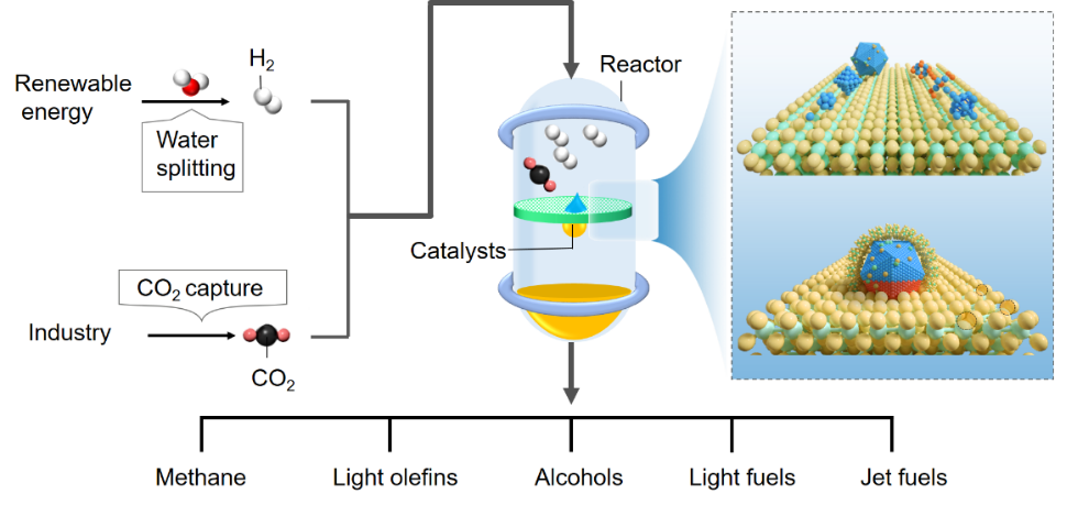 CO2 catalytic hydrogenation can utilize waste CO2 to synthesize value-added chemicals, including C₁ products (such as carbon monoxide, methane, methanol) and C2+ products (such as olefins, ethanol, gasoline, jet fuel, etc.), with promising industrial application prospects. However, due to the high separation cost of hydrogenation mixture products, achieving high product selectivity is one of the key issues for economic process feasibility. Given the complex reaction network of CO2 hydrogenation and the presence of various active sites on the catalyst surface, product selectivity control remains a challenge.