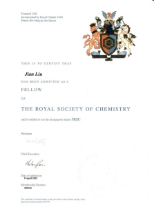 近日,best365官网化学化工学院院长刘健教授当选为英国皇家化学学会会士(Fellow of the Royal Society of Chemistry, FRSC),以表彰其在化学科学领域的杰出贡献。