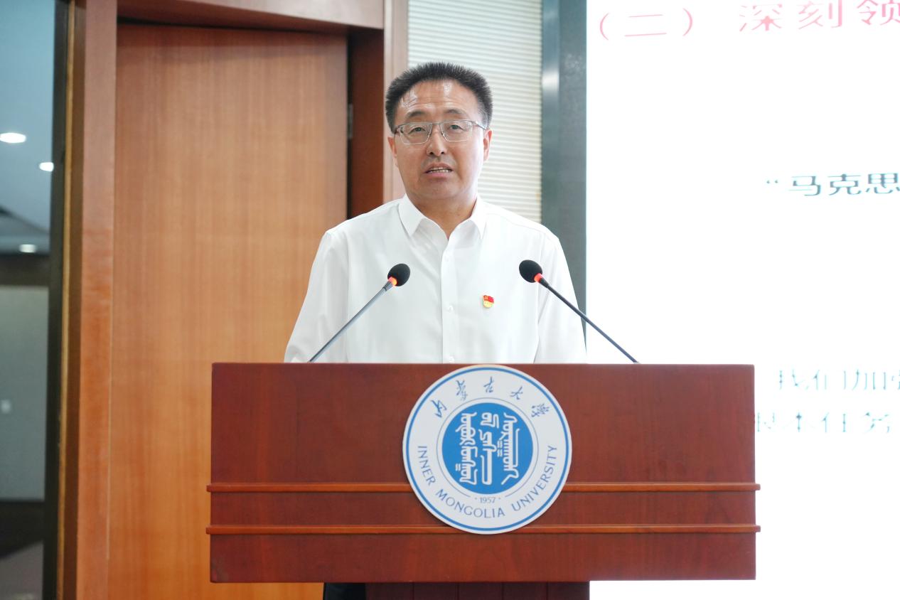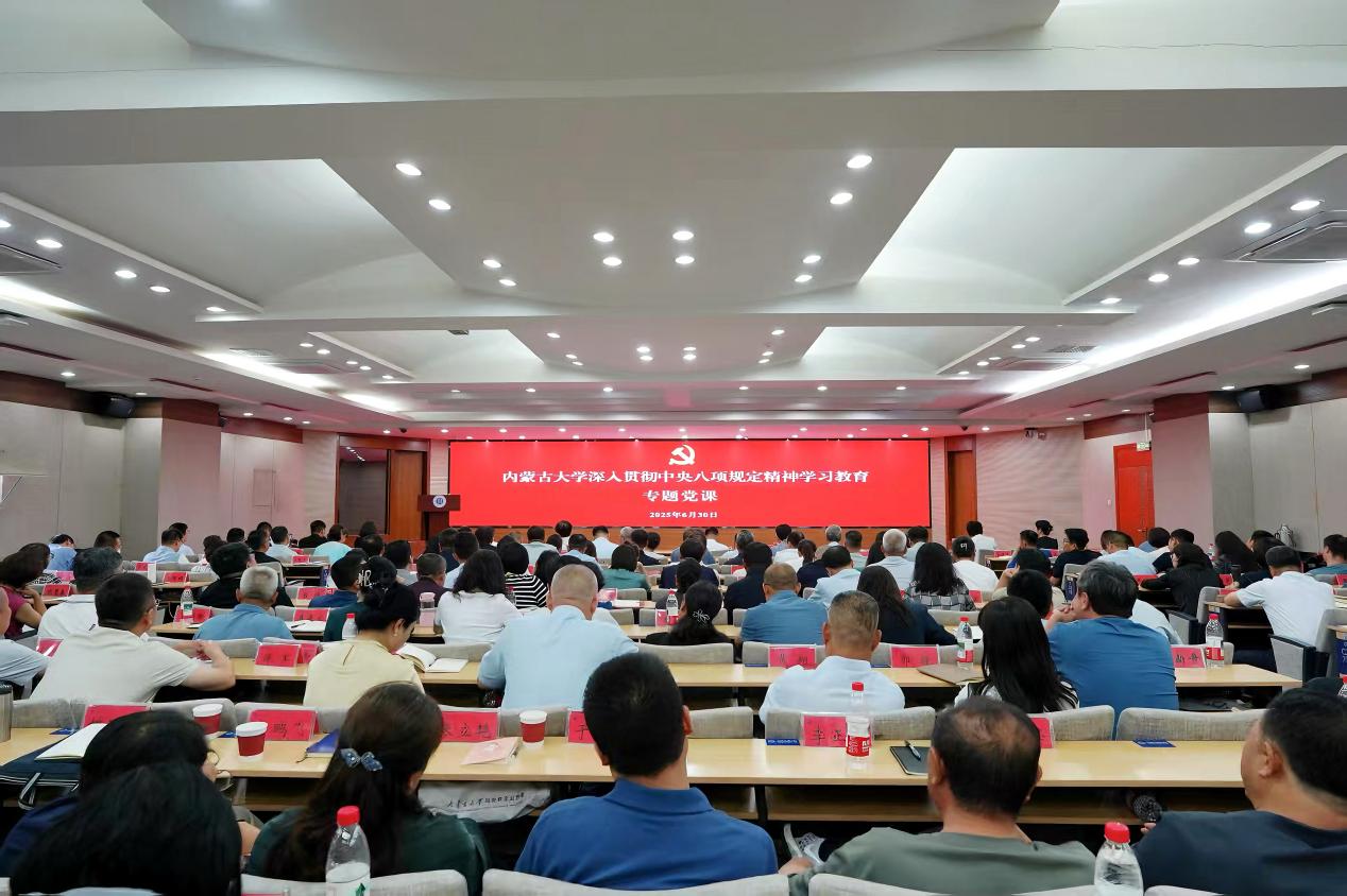 6月30日上午,校党委书记成涛在赛罕校区学术会议中心8号会议室为学校党员干部讲授深入贯彻中央八项规定精神学习教育专题党课。教育部部省合建高校党建联络员郑俊宝,全体校领导、全校副处级以上领导干部聆听了党课。